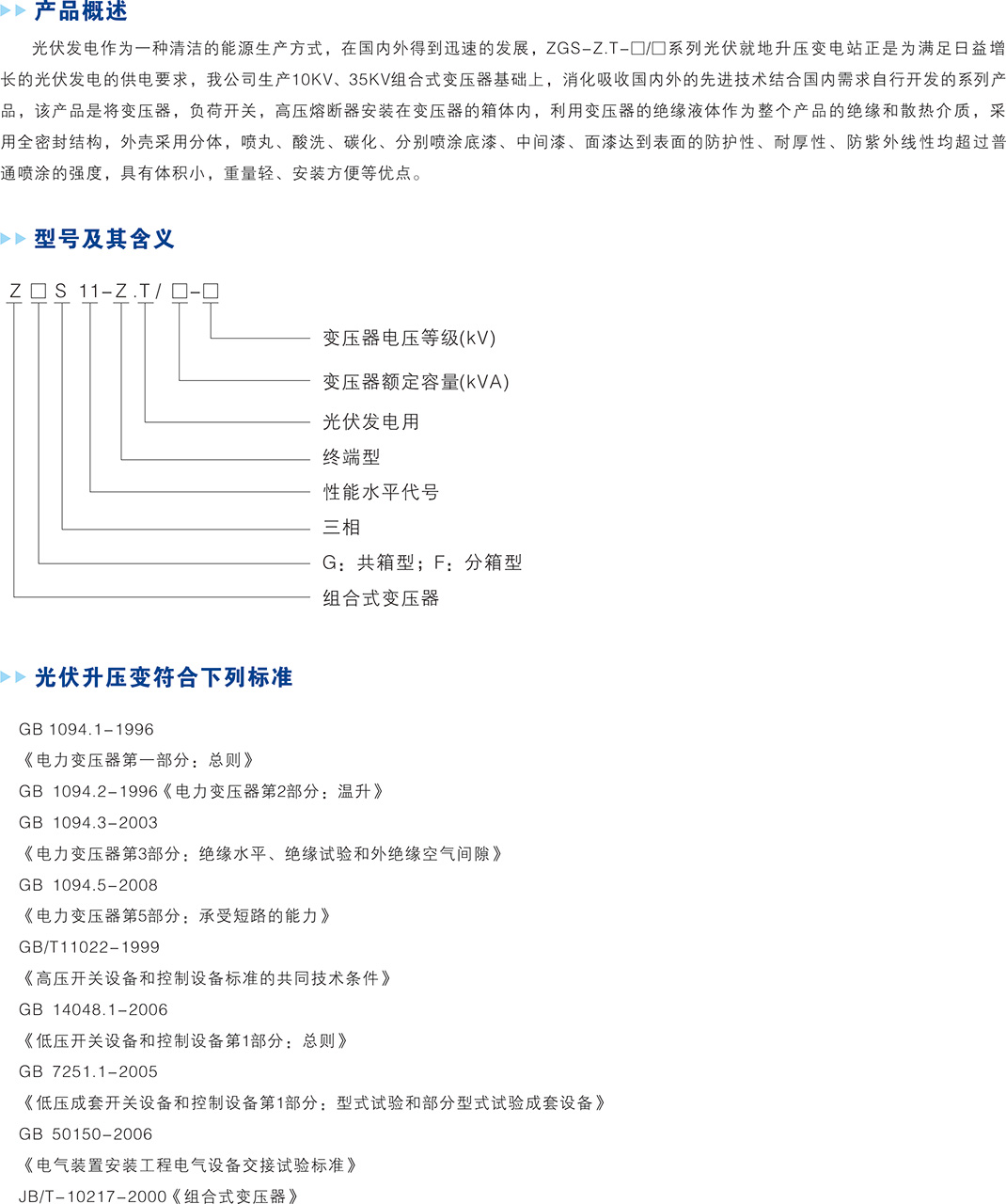 > ZGS11-Z.T系列光伏雙分裂升壓發電用箱式變壓器
