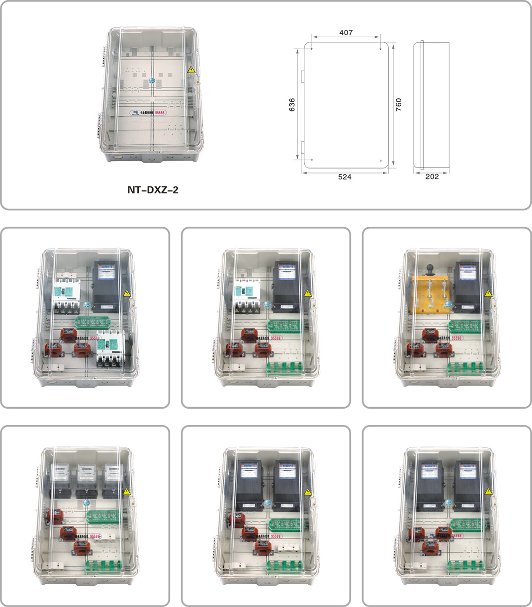 NT-DXZ系列三相多功能動力計量箱是一種功能多樣化、防竊電透明化的新一代計量配電箱,可滿足不同用戶的多種需求。具有體積小、功能多變、組合方便等特點,箱內(nèi)空間可依據(jù)客戶需求設(shè)置各類電表、電流互感器、低壓熔斷器、低壓斷路器、進出線端子、聯(lián)合接線盒的安裝位。底座上設(shè)有各類安裝槽,方便安裝各類原件,并可以在預(yù)付費電表、開關(guān)相應(yīng)的位置設(shè)置IC卡窗口和開關(guān)窗口。